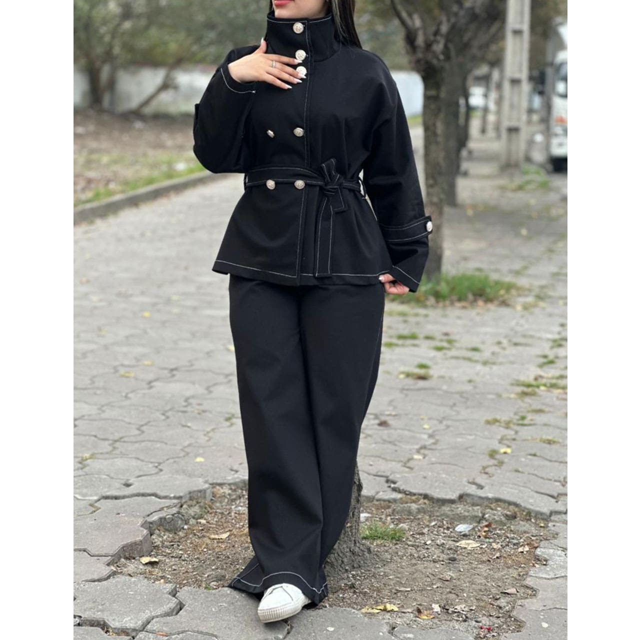 جنس : پارچه تنسل ضخیم طرح جین سایز : فری سایز مناسب سایز 36 الی 44 قد مانتو : 70 قد شلوار : 105 دوخت عالی